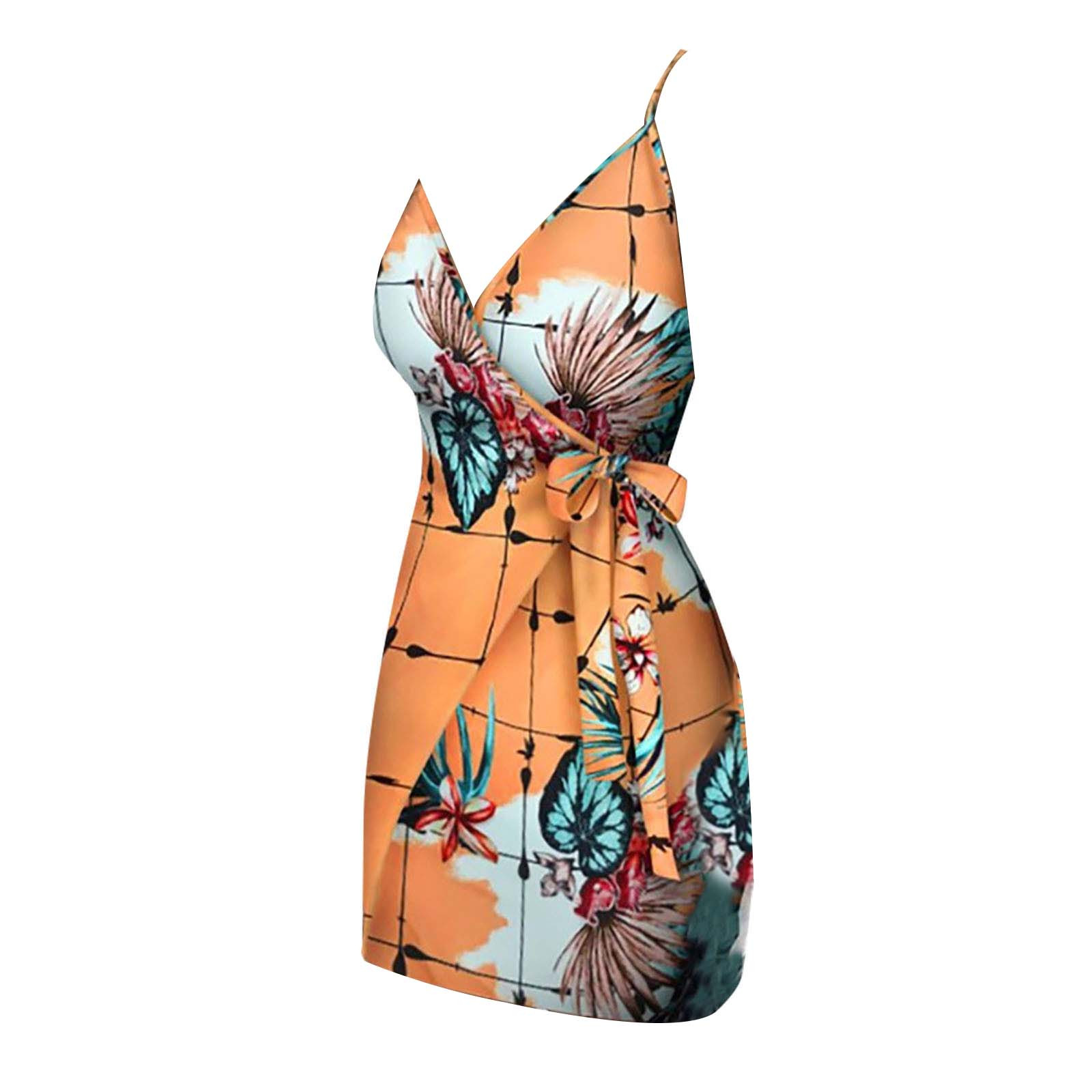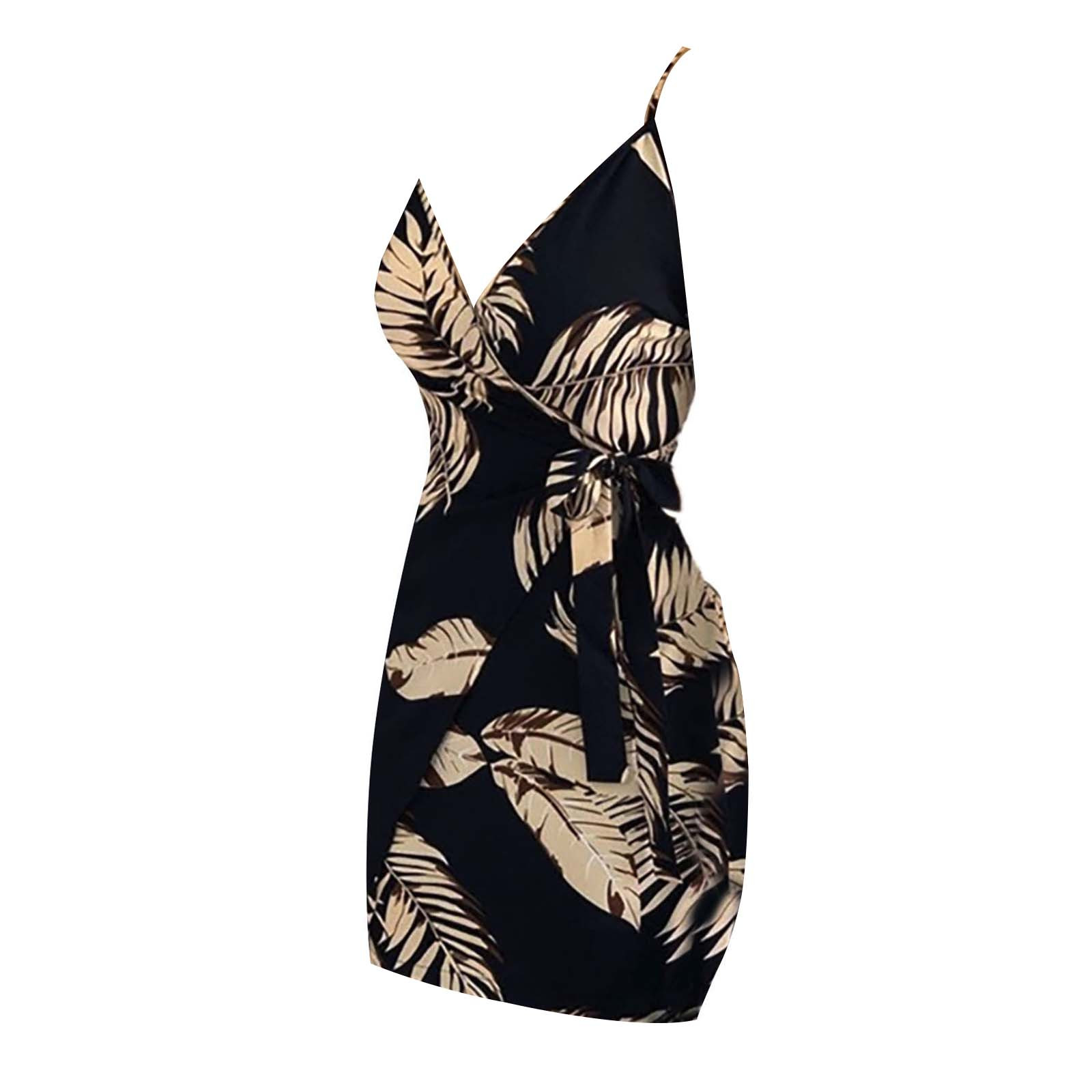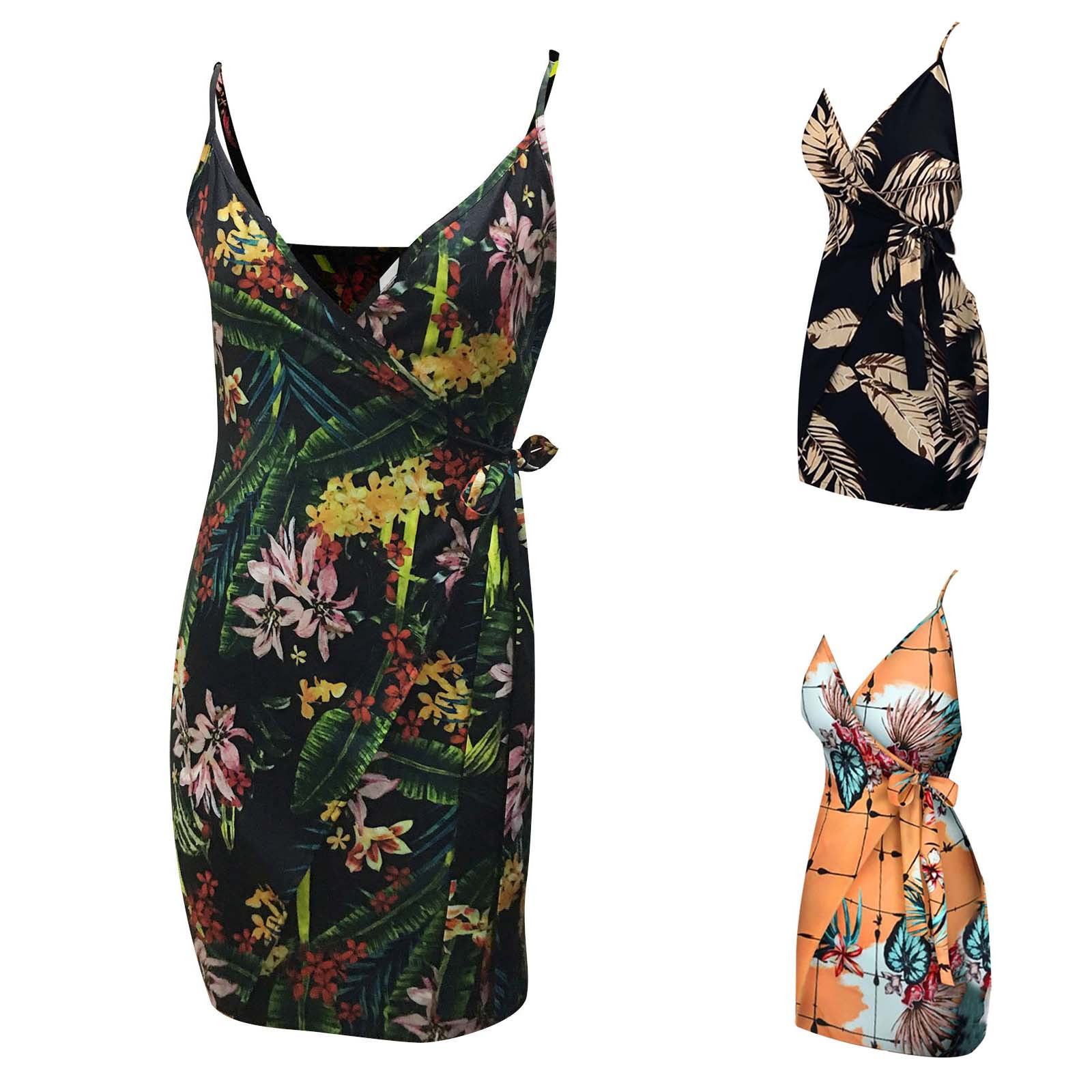 2023 new sexy suspender skirt fashion trend printing summer women's tie waist dress