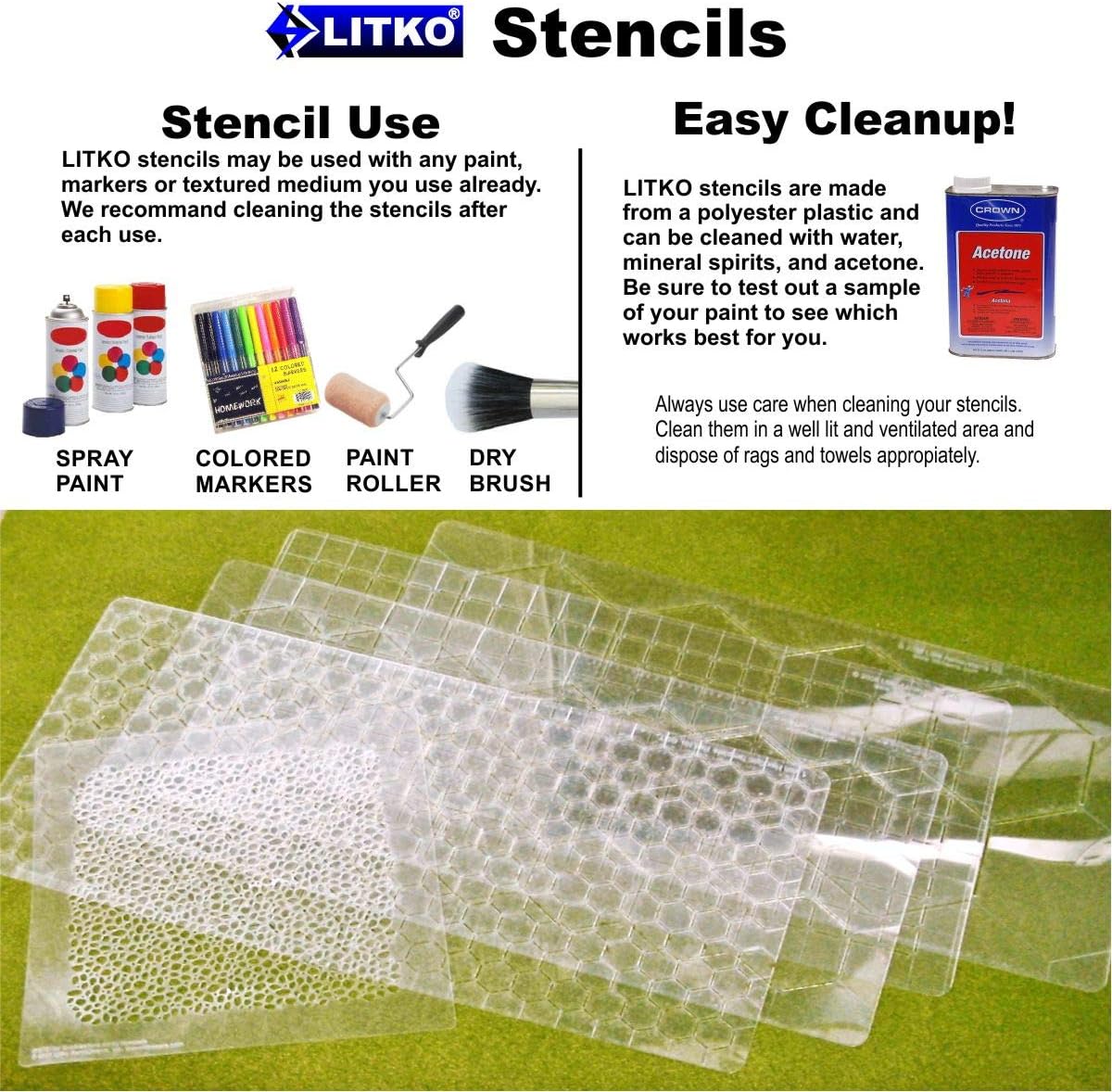 LITKO 2-inch Hex Grid Stencil, Dot Pattern