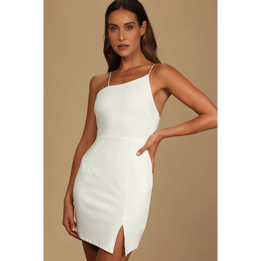Lulus “Party for Two” Ivory Asymmetrical Bodycon Mini Dress – Small NWT