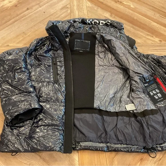 Michael Kors Travel Engineered Quilted Nylon Puffer Hooded Jacket - Modern and Glossy Streetwear StyleSize: XLApproximate Measurements (flat lay, front side):Chest (measured from underarm to underarm): 25.5"Length: 28.5"Water resistant, Wind Proof, Cold Resistant, Compact and Sustainable InsulationVery good condition with no known flaws.