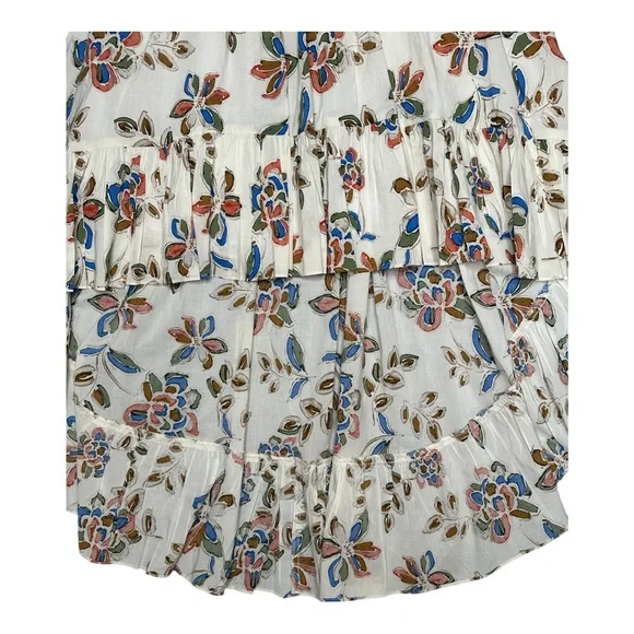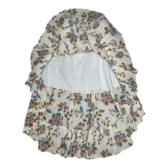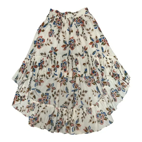 Product FeaturesFits true to size, order your normal sizeDesigned for a contemporary fitBanded waist with elasticized backAsymmetric shirred panel at frontRuffled high/low hem with tulip frontAllover floral print, pull-on styleMade in USASize:SmallCondition:Like new, never wornApproximate flat lay measurements:Waist: 13.5"Waist to Hem: 20" high (front) , 37" low (back)See pics for details57-6171
