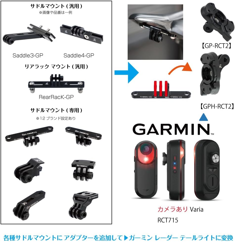This product is for use with Wreckmount aluminum mounts (compatible with other brands and resin parts may not be compatible). Compatible Models (2022.6.16 Currently) G a r m i n Varia Barrier Rear View Radar with Camera and Tail Light RCT715 (010-02478-00) The low/high type can be changed by unscrewing and reassembly. The straight type cannot be attached to other types such as for the FIJIK / for the PRO LOGO (Prologo-SDGP2), etc. In addition, the saddle mount (30/030 series, etc.) may not be level. Specifications and failure of installation such as expansion parts, product explanation, compatibility information, and cautions cannot be explained by Amazon using character limits or expressions. Please see the product details page of the manufacturer before purchasing. Common Notes The specifications, design, accessories, accessories, and important information may change without prior notice. There may be cases where it will interfere with the mount, part, saddle, or saddlebag. Please check the interference of the part you are planning to install before purchasing. The load capacity and recommended load capacity of the saddle screw holes (dowel holes) are unknown. We do not answer any questions about each dimensions. Please check with each brand distributor for dimensions. ※There may be cases where the model is different from the same name. Please check the shape of the hole as well as the compatible model before purchasing. Images are for illustrative purposes only. Other accessories are not included. Does not include any tools. Some images are prototypes, so the design may differ from the product sold. The included in this page is a mounting adapter page for saddles, seatposts, safety lights (tail lights), mud guards, bibs, etc. The RCT2 joint is 183. Safety light adapter, repair parts, Garmin and camera included, [RP-RCT2-Part] for Varia M4 specifications can be replaced during repairs