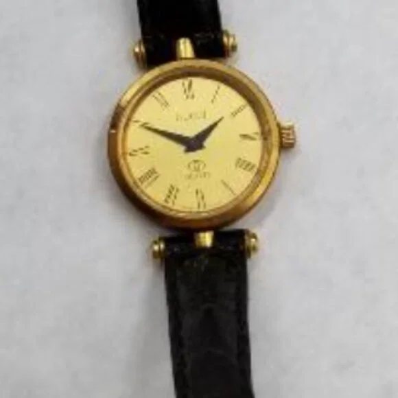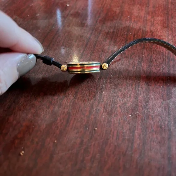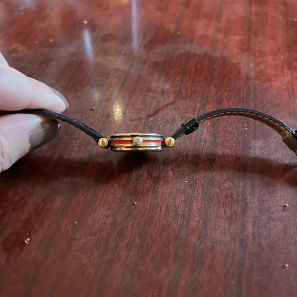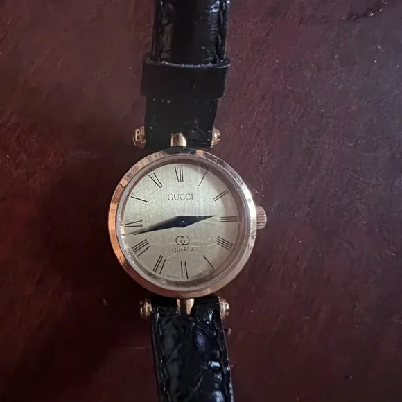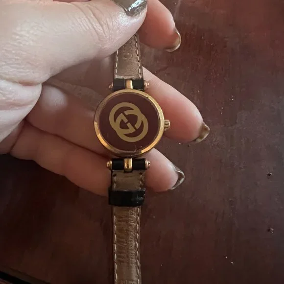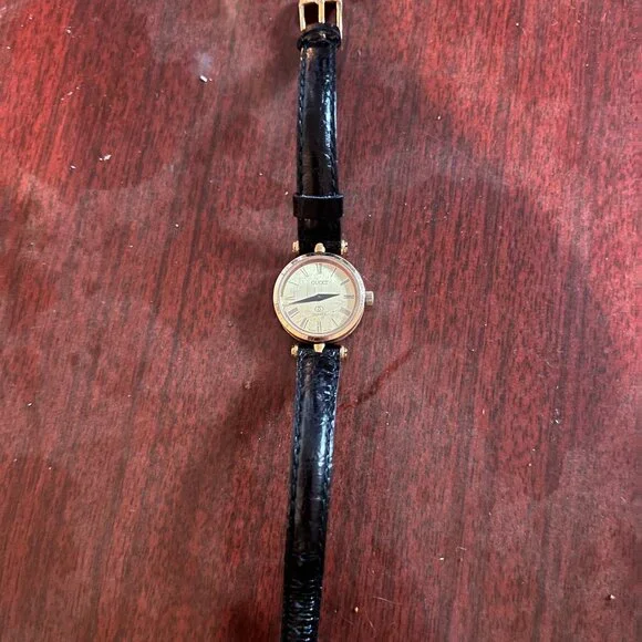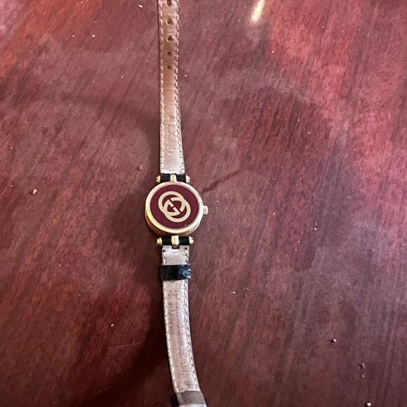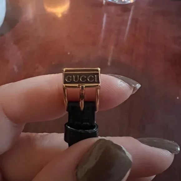 Vintage Gucci Women's Watch Battery was just replaced WorkingKeeps time but runs a little slow, so it needs to be adjusted daily (it's easy you just change the time like a normal watch) Some scratches on the case Case Length:13/16"Width: 13/16"Height: 1/4"Case Material :MetalBandLength :7 3/4"Width :5/16"Band Material :Leather