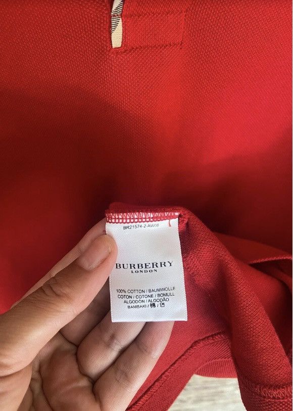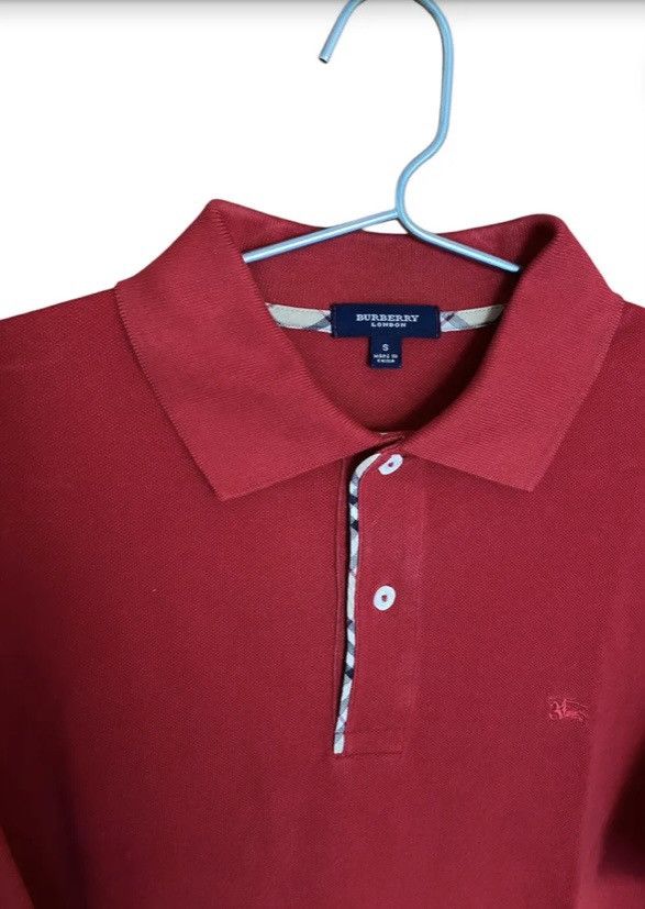 Red polo shirt with vintage check on the neck from Burberry.
